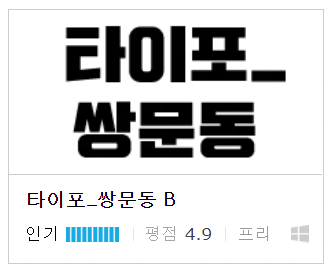 - 타이포 쌍문동 B 폰트는 개인이 비상업적인 용도로 사용하는 것에만 한하여 무료로 제공됩니다. (상업적인 용도로 사용 시 개인 사용자라도 별도의 구매 절차가 필요합니다.)