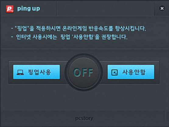 핑업을 적용하면 네트워크 설정 변경을 통하여 온라인 게임의 반응속도를 향상시킵니다.
