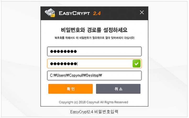 이지크립트는 미국 국방부가 권장하는 SHA 512bit 및 AES 256bit 알고리즘을 적용한 파일 암호화 프로그램입니다