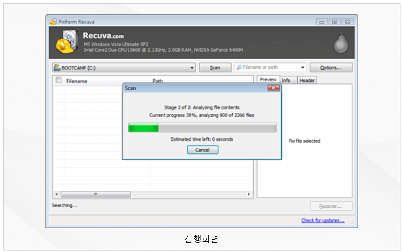 Recuva는 포맷, 손상, 파일 삭제, 바이러스, 휴지통 비움 등의 원인으로 인해 파티션의 파일이 삭제된 경우 간편하게 복구하게 해 줄 수 있는 프로그램입니다.