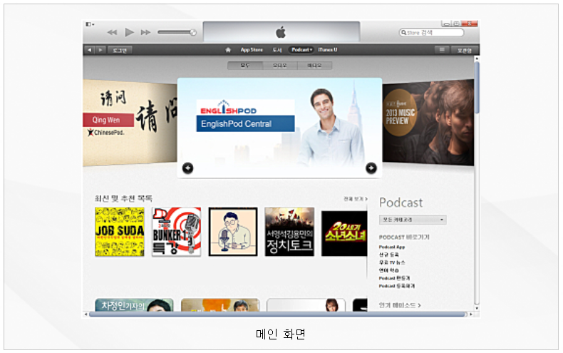 애플 아이튠즈는 미디어의 보관 및 재생이 가능하고 애플의 휴대기기에 미디어를 추가할 수 있도록 해주는 응용 프로그램입니다.